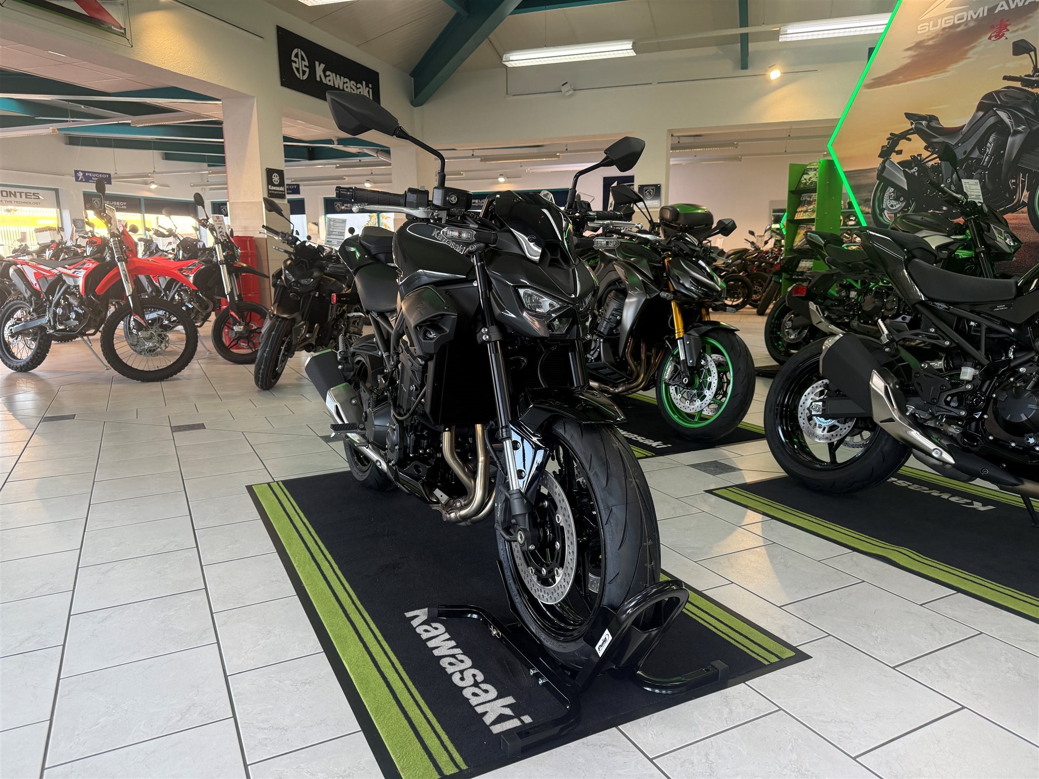 Die Z900 evolutioniert die Sugomi-Philisophie: Mit ihrem markanten, aggressiven Sugomi-Design, ihrer erstklassigen Ausstattung und der geballten Power des 948-cm-Motors setzt die Z900 ein Statement auf jeder Straße.